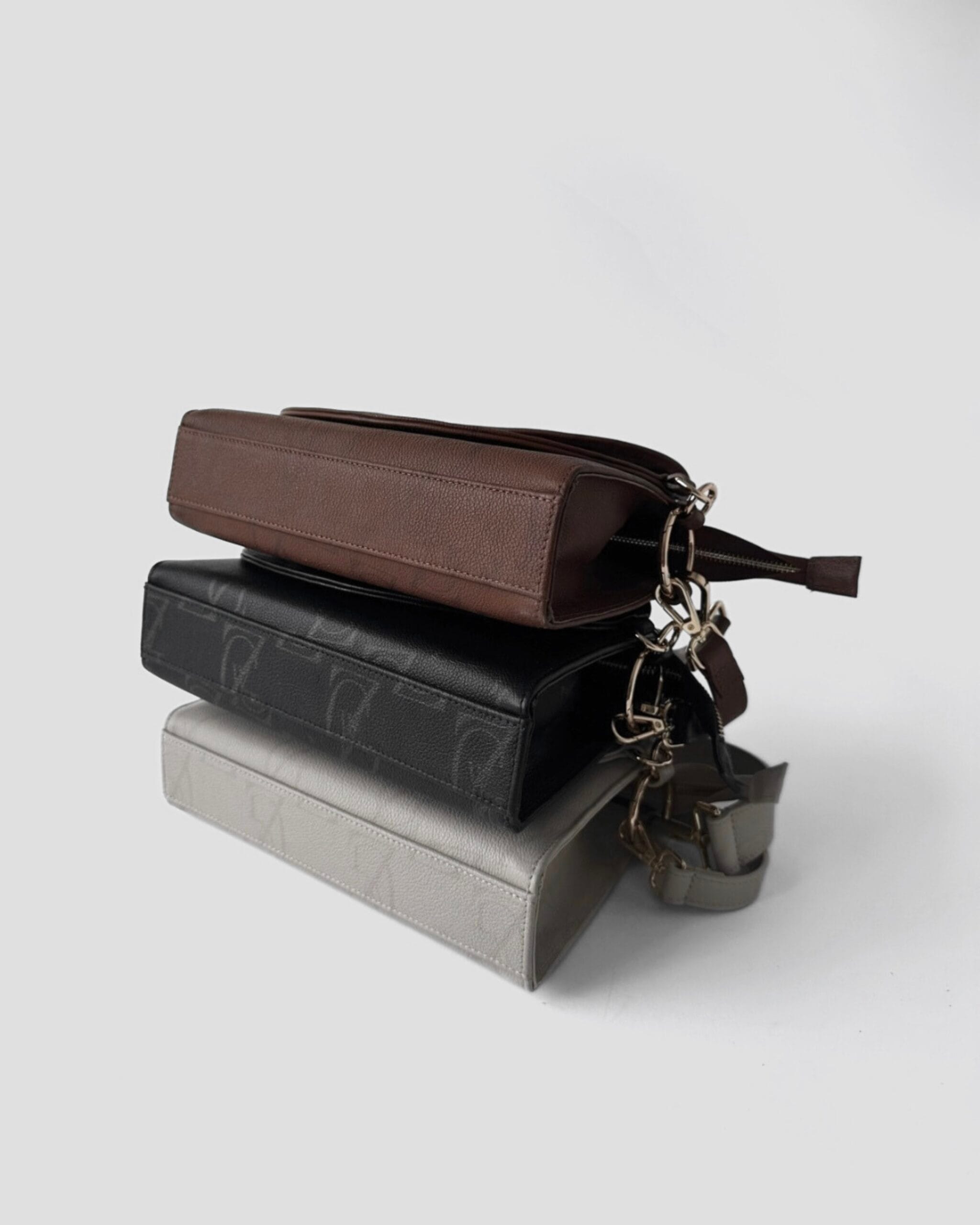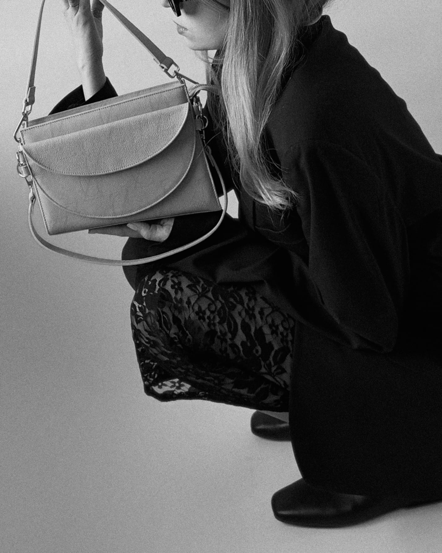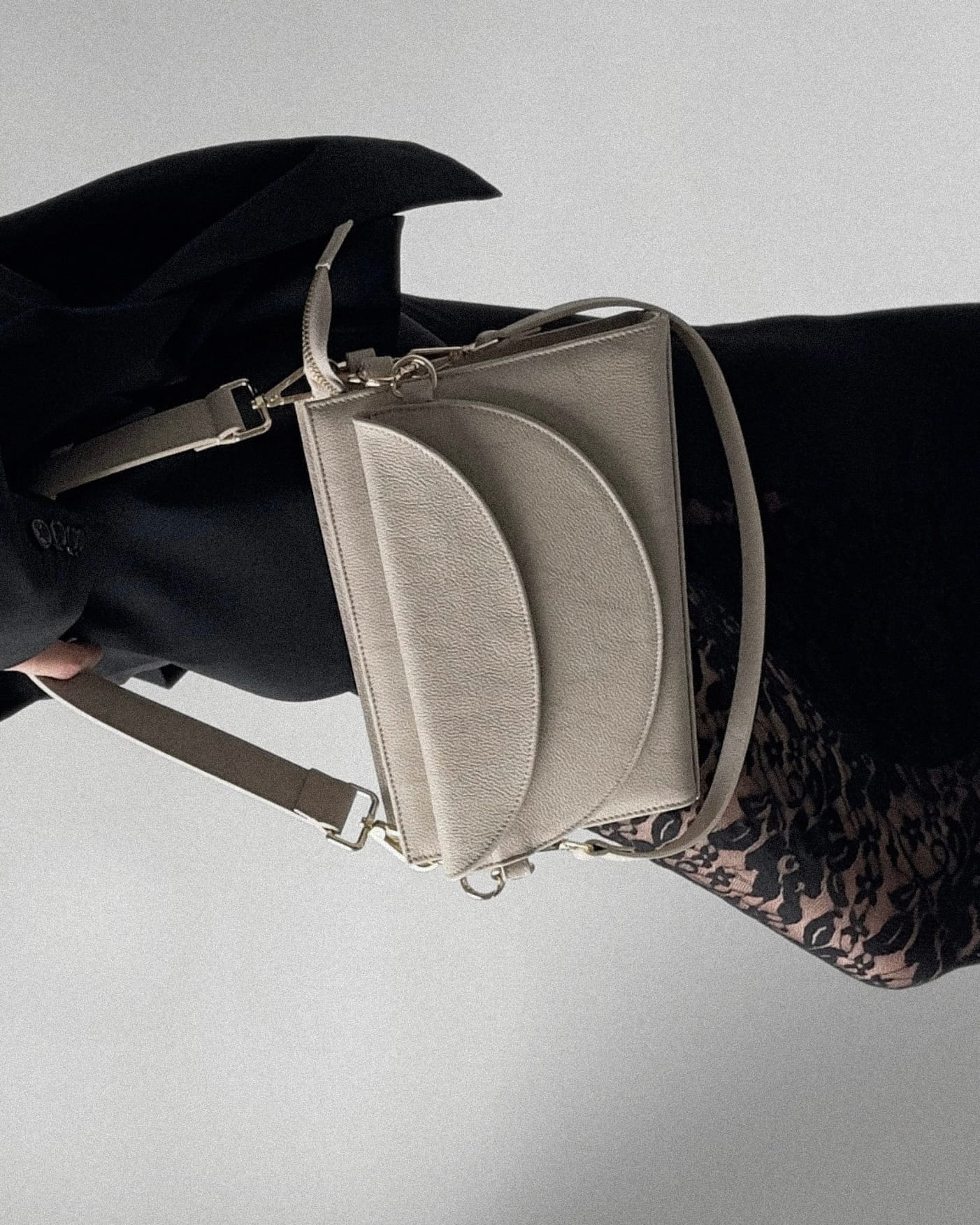 Projekt wyróżnia się asymetrycznym, skośnym dnem, które przełamuje klasyczną formę i podkreśla unikatowy design modelu. Dwa dołączone paski – szerszy, idealny na co dzień, oraz węższy, bardziej elegancki – sprawiają, że torebka doskonale dopasowuje się do różnych okazji.